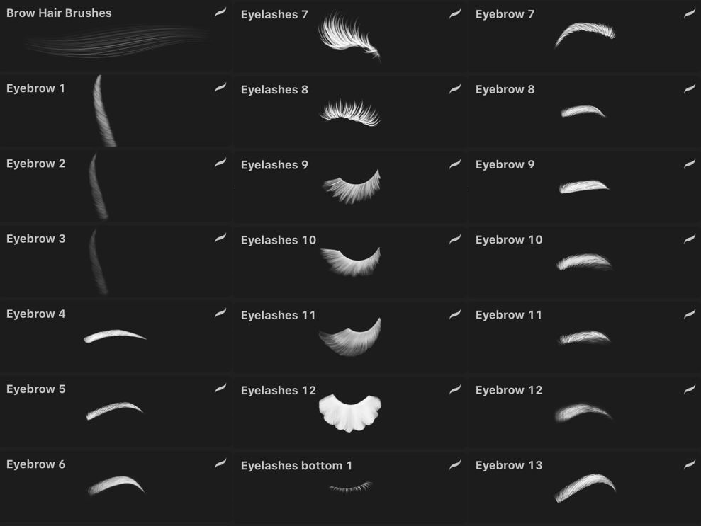 1 brow hair brushes, 14 eyebrow, 12 eyelashes, 2 eyelashes bottom, 2 eyelashes closed